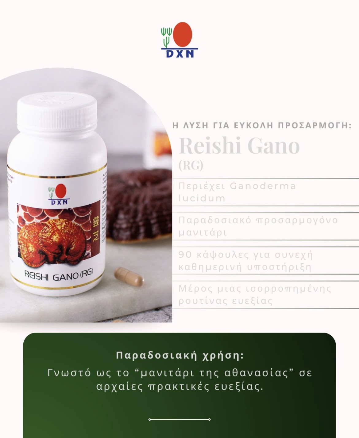 | Συστατικά | Σώμα μανιταριού Ganoderma lucidum., Σκόνη μανιταριού Ganoderma lucidum. |