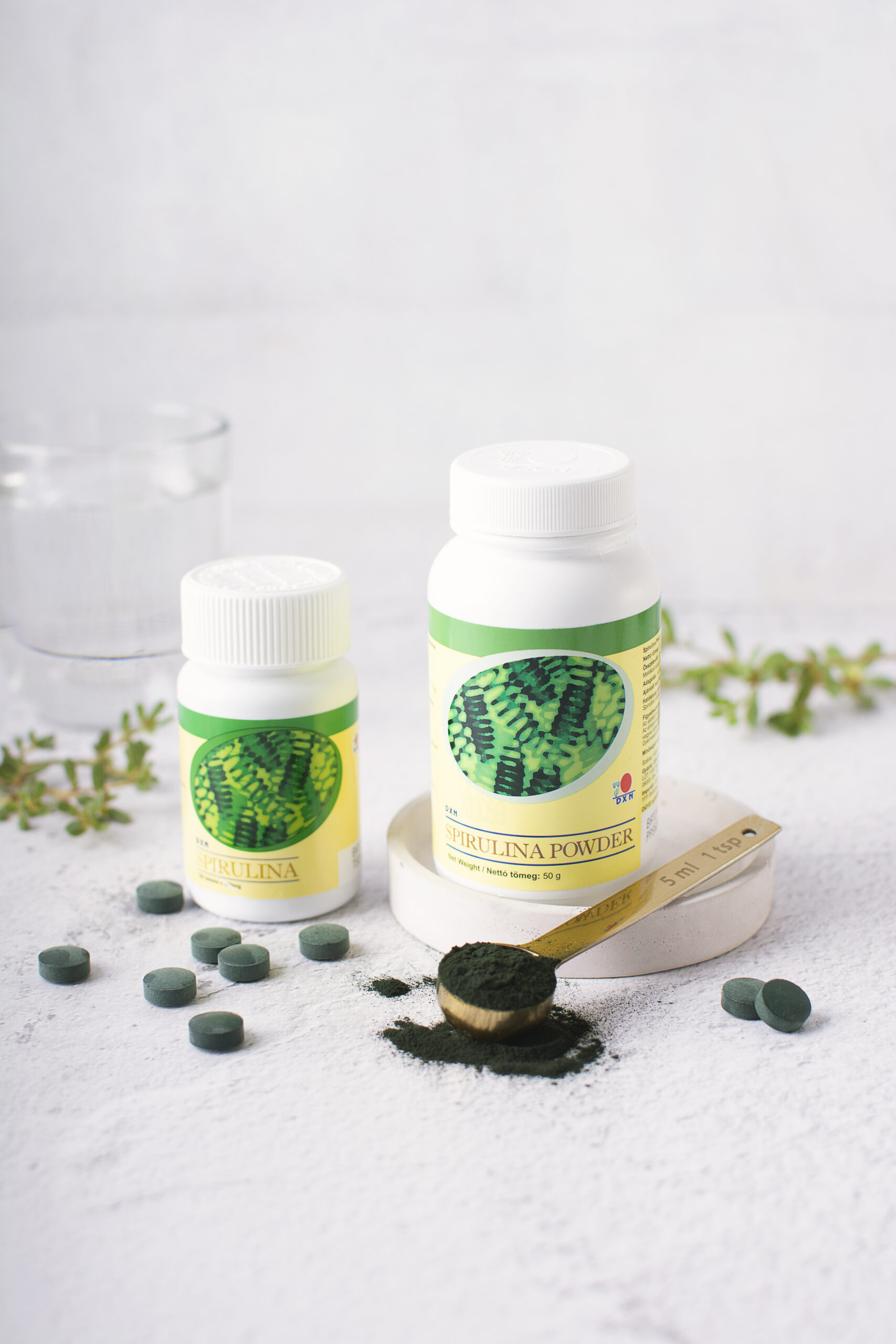 | Συστατικά | Σπιρουλίνα (Spirulina platensis) Άλλα συστατικά: σταθεροποιητές: ανθρακικό ασβέστιο, αραβικό κόμμι. |